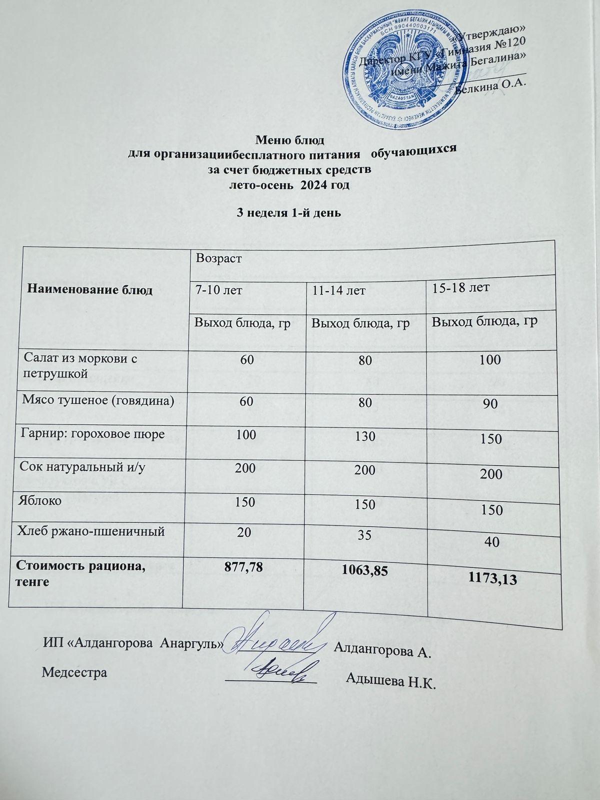 Тамақтандыру 06.09.2024