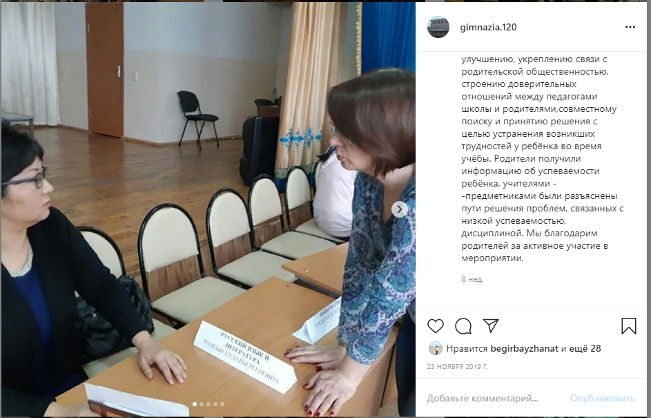 22.11.19 КГУ Г№120 радушно распахнула двери для родителей учащихся 9 классов. В школе прошёл День открытых дверей. Как показывает опыт, проведение ДОД способствует улучшению, укреплению связи с родительской общественностью, строению доверительных отношений между педагогами школы и родителями,совместному поиску и принятию решения с целью устранения возникших трудностей у ребёнка во время учёбы. Родители получили информацию об успеваемости ребёнка, учителями - -предметниками были разъяснены пути решения проблем, связанных с низкой успеваемостью, дисциплиной. Мы благодарим родителей за активное участие в мероприятии.
