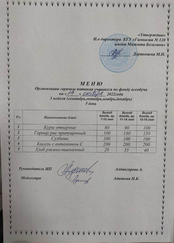 Тамақтандыруды ұйымдастыру бойынша жоспар