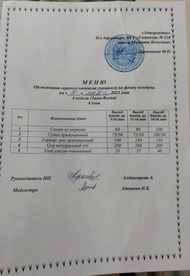 Тамақтандыруды ұйымдастыру бойынша жоспар
