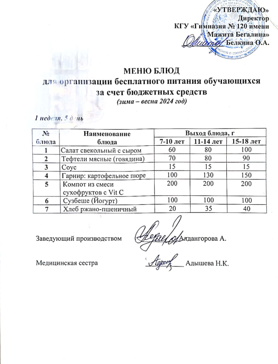 Меню 3 неделя 5 день