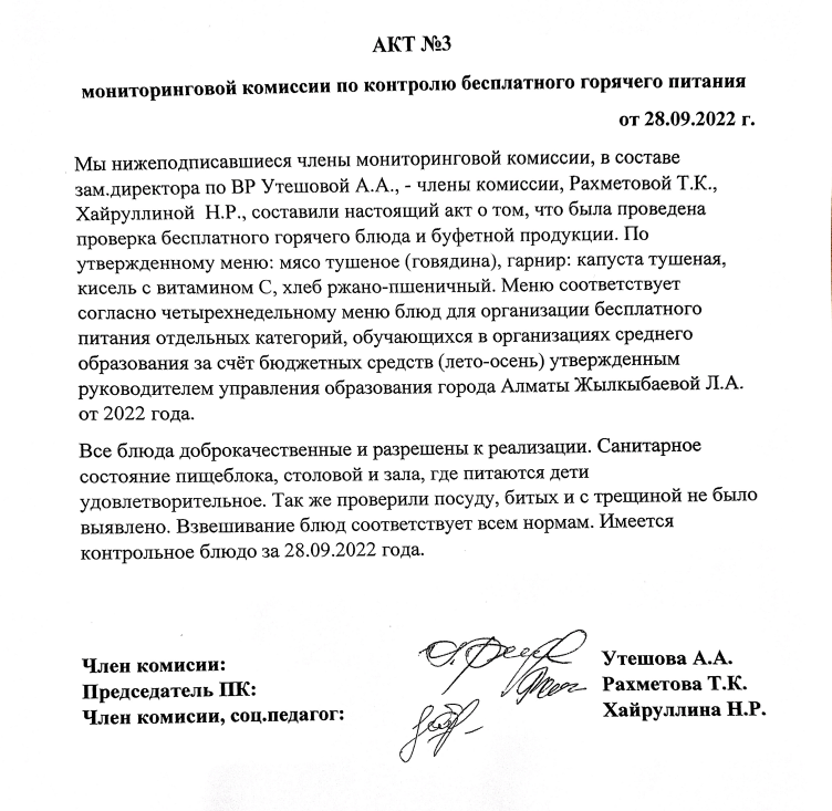 Тамақтандыруды ұйымдастыру бойынша жоспар